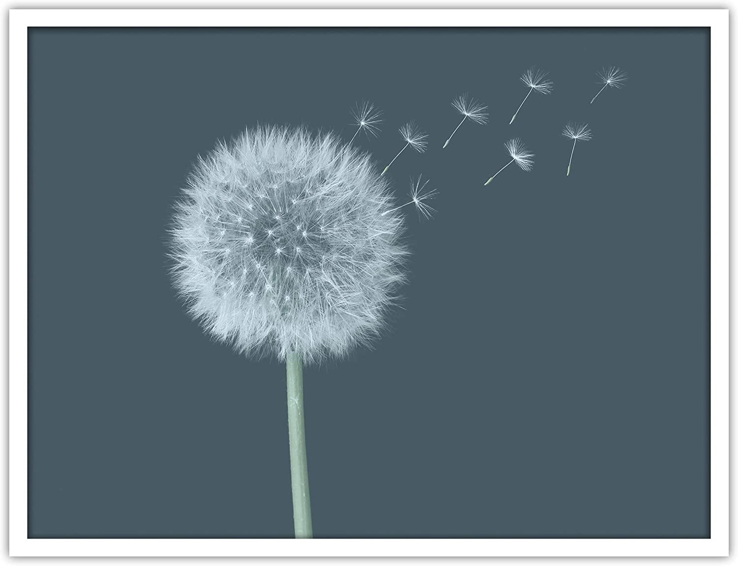 Pixonsign Framed Wall Art Print White Dandelion With Florets In The Wind Botanical Plants Photography Realism Modern Closeup Relax Calm Blue Cool For Living Room Bedroom Office 12 X16 Black Walmart Com